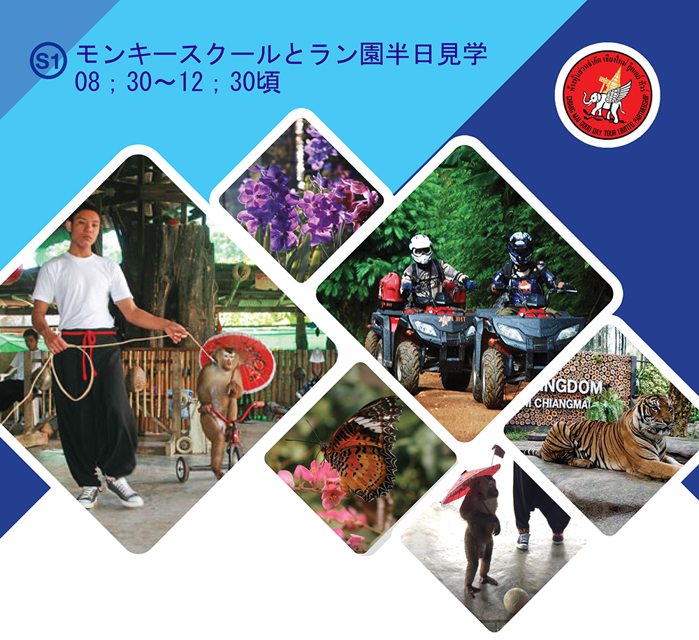 ※モンキースクールをご要望でないお客様には、代わりに「タイガーキングダム、ヘビ園、ATV、シューティング」のいずれか1ヶ所に