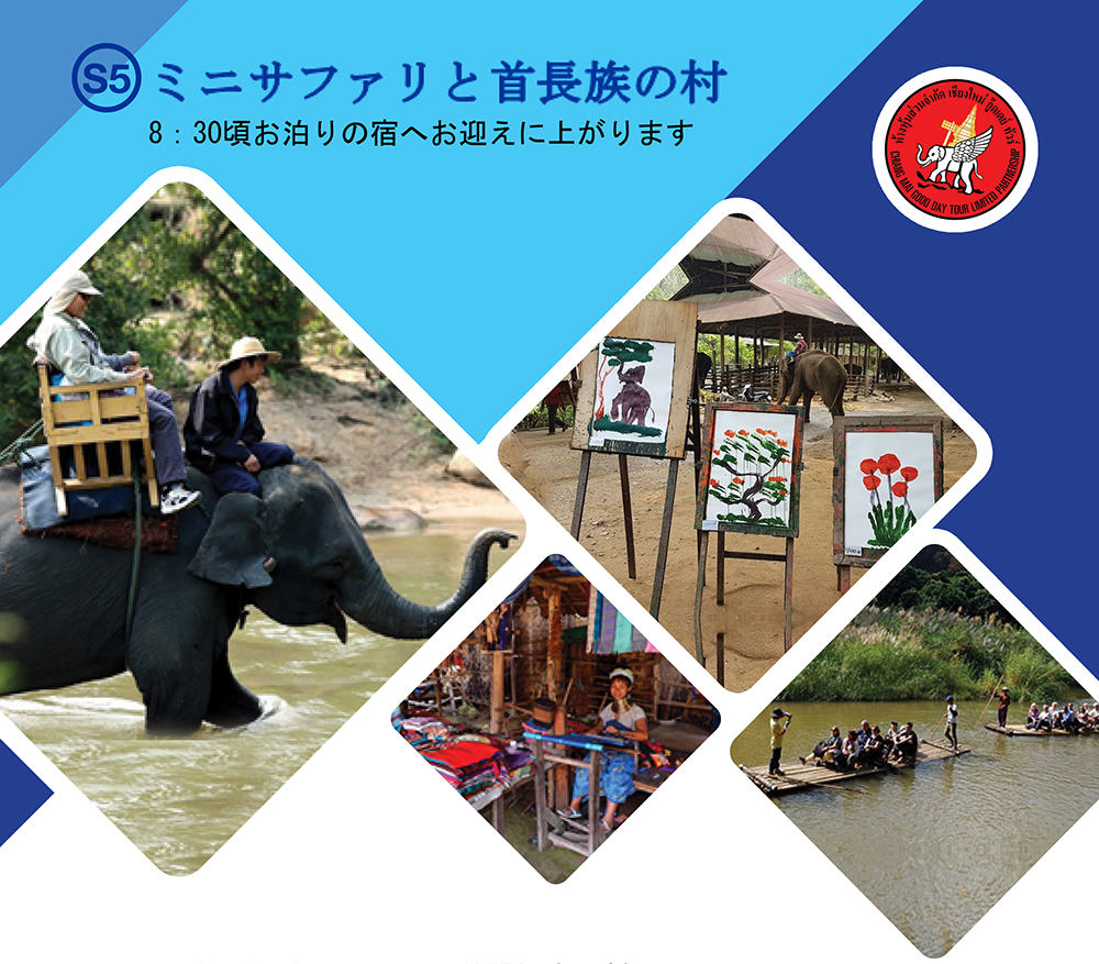 S5-ミニサファリと首長族の村 Posted on July 16, 2020May 13, 2024 by 市内より車で約1時間程の山間に綺麗な渓谷があり、 約40頭の象が棲んでおります。 ここでかわいい象の楽しいショー、象に乗ってトレッキング、牛車乗りや 筏下りをお楽しみ下さい。 その後、山岳民族「首長族の村」へご案内致します。 お泊りの宿へのお戻りは16:00頃となります。 ご料金: 1名様当りのご料金 2名様 @2,550B 3名様 @2,400B 4名様以上 @2,200B (*料金に含まれるもの:専用車、日本語ガイド、各所入場料、象乗り、牛車乗り、筏下り、昼食、保険) Posted in Sightseeing Tour.